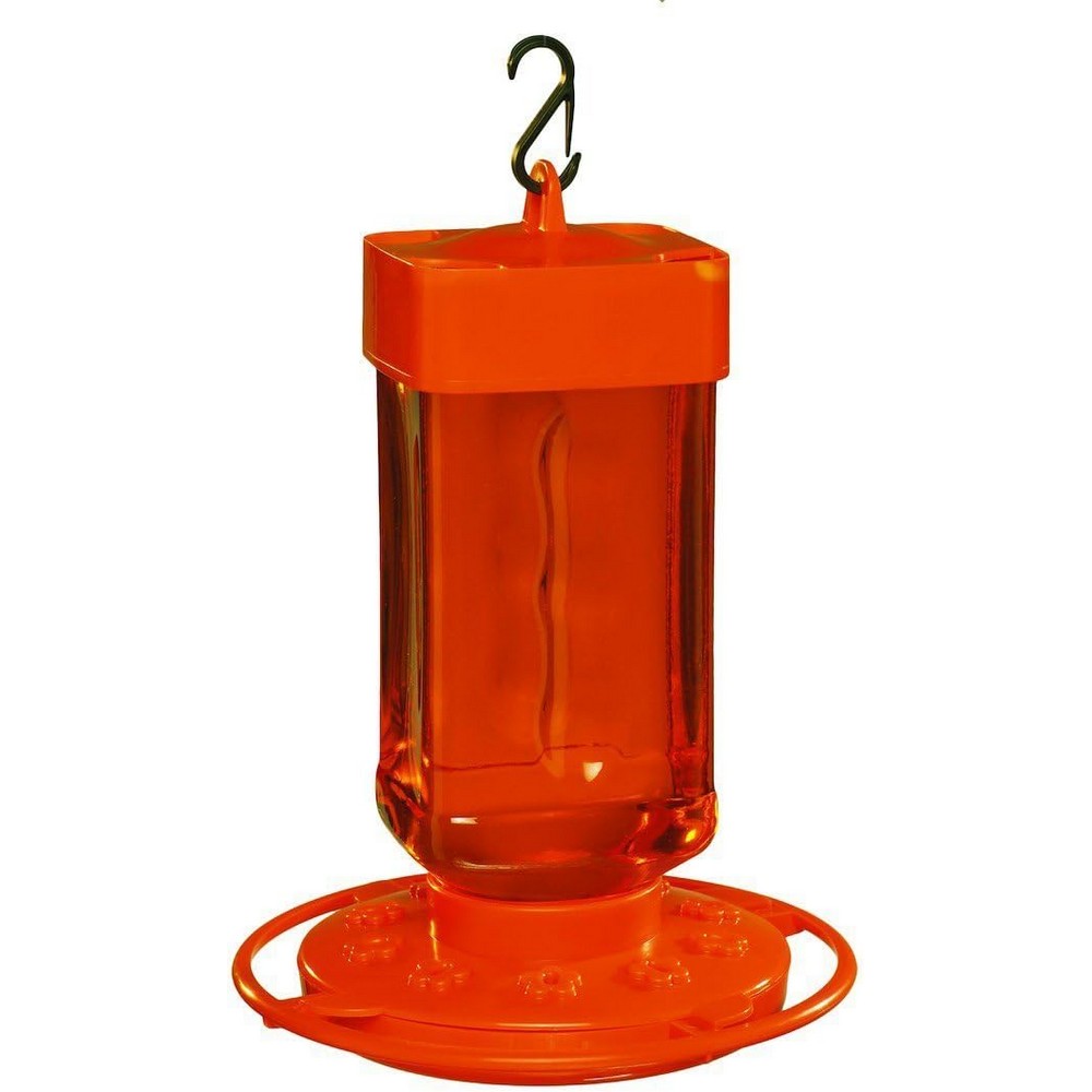 First Nature 32-Ounce Oriole Feeder is brightly colored orange, which attracts the most inquisitive Oriole. With easy-to-fill wide-mouth jar reservoirs and two-part bases, First Nature Oriole Feeders are the easiest feeder on the market to fill and clean. The feeding ports will accommodate several Orioles at a time. With First Nature Oriole Nectar Concentrate, you can mix the correct proportions right in the feeder jar. Hang the feeder by the included S hook.