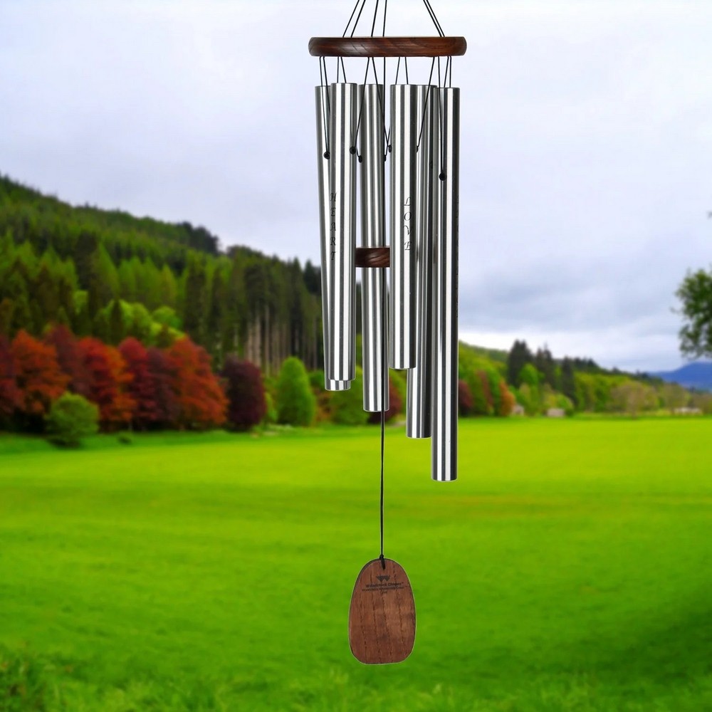 This uplifting chime is tuned to a beautiful five-note scale found throughout the world. This chime features six words of virtue silk-screened on the tubes (Love, Heart, Passion, Cherish, Caring, Encourage), one word on each tube.
