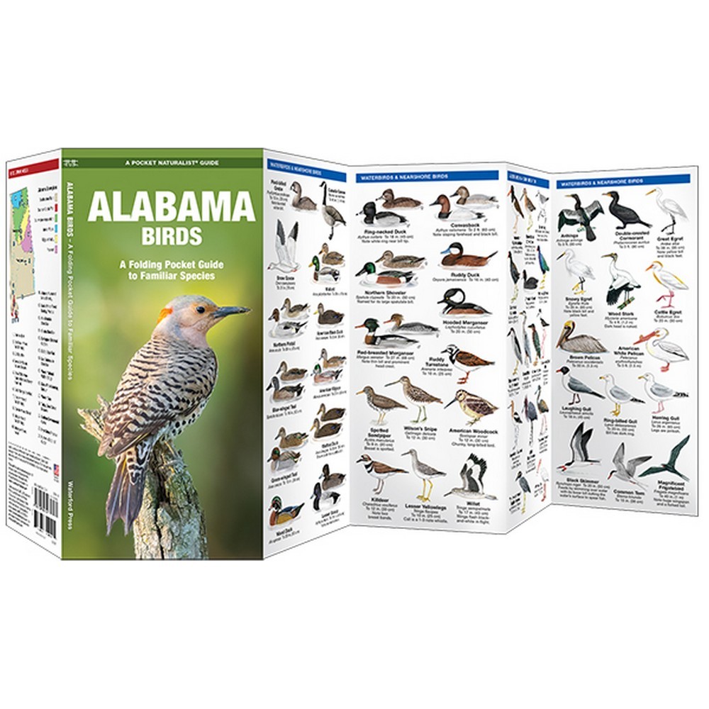 Alabama Birds is the perfect pocket-sized, folding guide for the bird lover and nature enthusiast. Rich illustrations highlight the most commonly found birds in Alabama. Laminated for durability, these handy guides are a great resource of portable information.