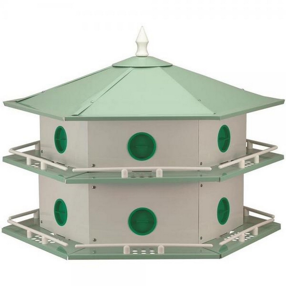 Purple Martins are social birds that prefer colony living. Heath’s 12-room Deluxe Purple Martin House is designed in a hexagon shape and built for the birds. Because it’s constructed of durable, lightweight aluminum it's made to keep the birds cooler in the summer months. Each room includes door stops and protective rails. Mounting pole sold separately.