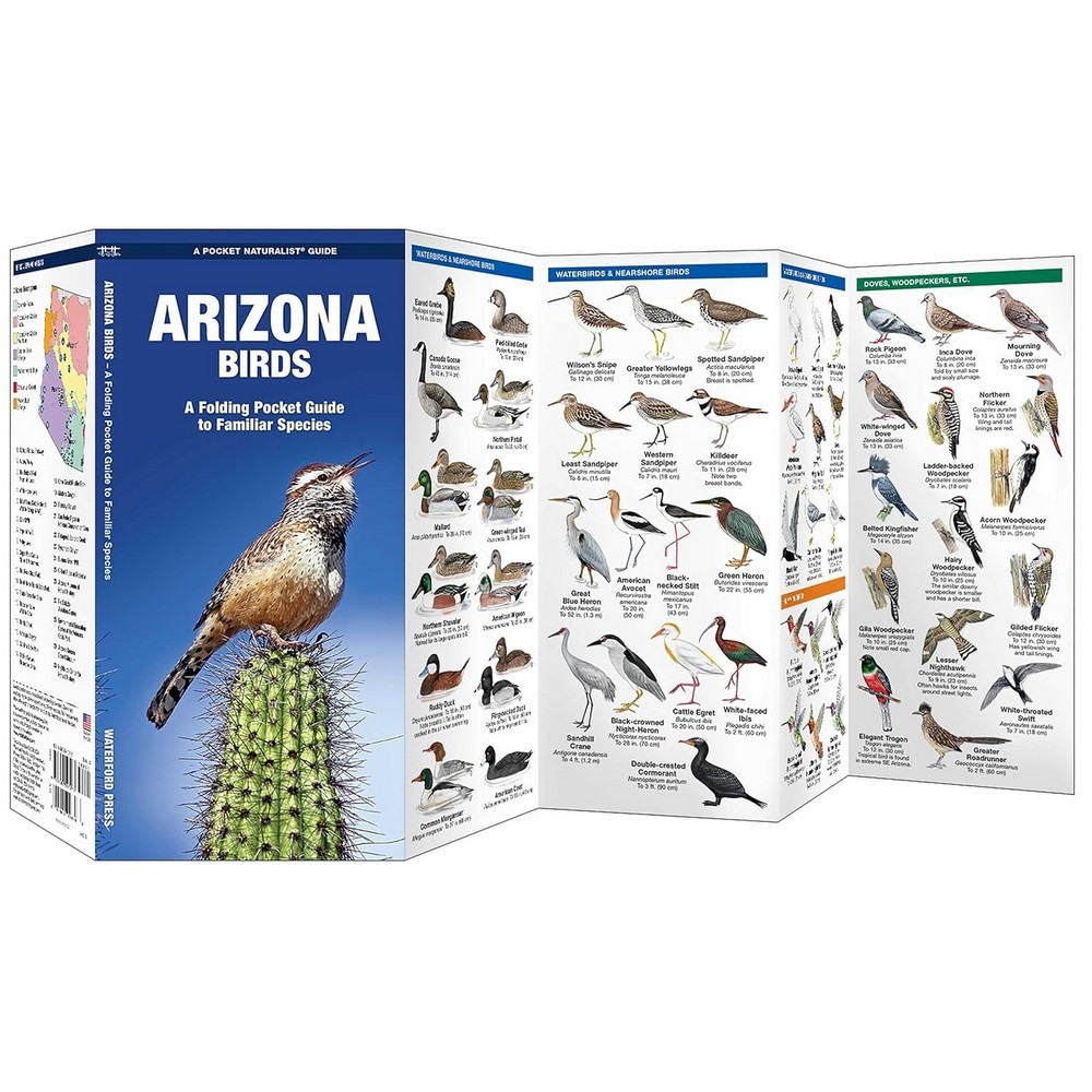 DescriptionReviews Description This pocket-sized, folding guide highlights the most commonly seen birds in Arizona. Arizona Birds is laminated for durability. Color illustrations and a bird size guide, help the birdwatcher to identify the most common species in their region. Reviews Be the first to review this item There are no reviews yet Product tags Made in USA 5930
