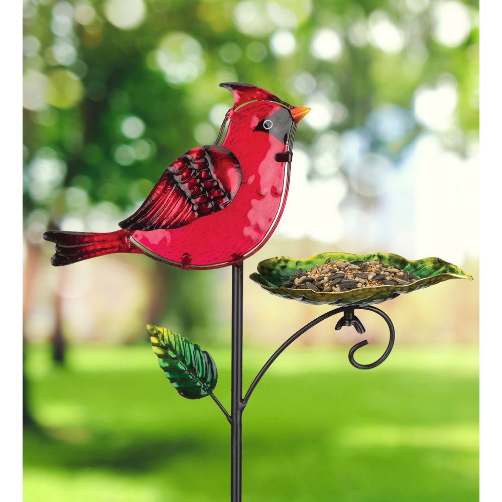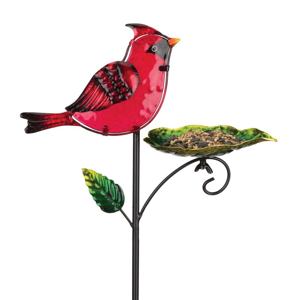Create a fun atmosphere for birds and bird lovers with these Bird Feeder Stakes. Artfully made of metal and glass, hand-painted and handcrafted, with decorative bowls that can be filled with feed. Available in four styles: Blue Bird, Hummingbird, Cardinal and Finch.