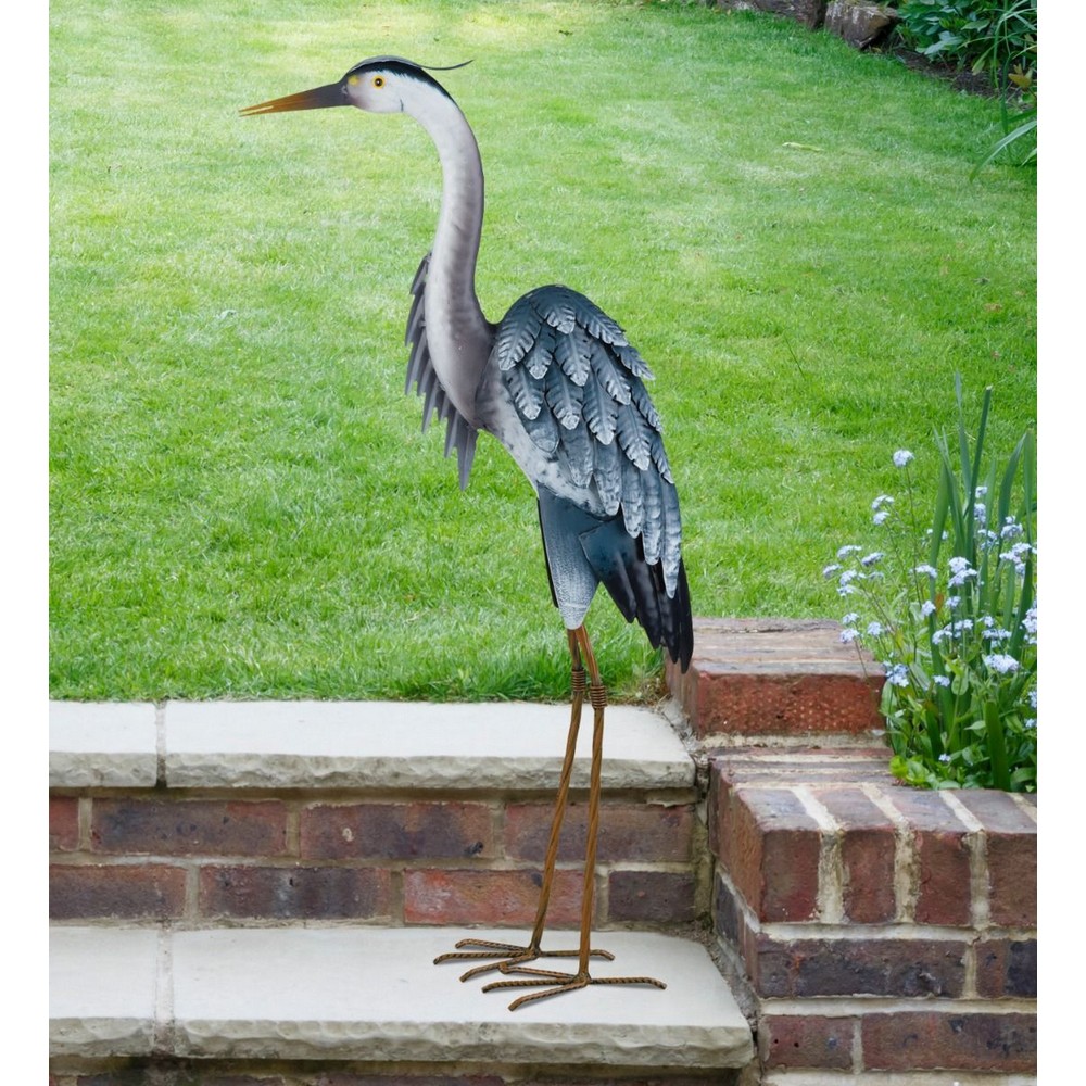 DescriptionReviews Description Hand-painted feather detail on sturdy, thick metal. This heron comes with a 6 inch ground stake to secure the statue to the ground as well as removable legs for easier shipment/storage. Reviews Be the first to review this item There are no reviews yet Product tags Coastal 1276