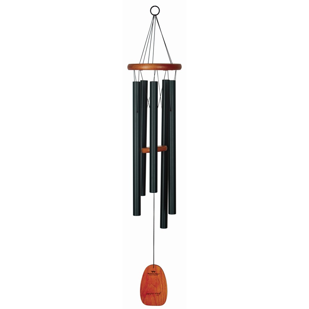 Inspired by the opening theme of Mozart's Piano Concerto number 21 in C Major (used in the motion picture Elvira Madigan), this chime sounds great alone and makes a perfect duet with its sister chime, the Chimes of Mozart Medium. The complementing colors of verdigris tubes and cherry-finish laminated bamboo are a beautiful accompaniment to any home. Boxed for gift-giving. Length: 40 inches. Consumer warranty is 1 year for anything lifetime on tuning. Cannot sell into Canada per manufacturer.