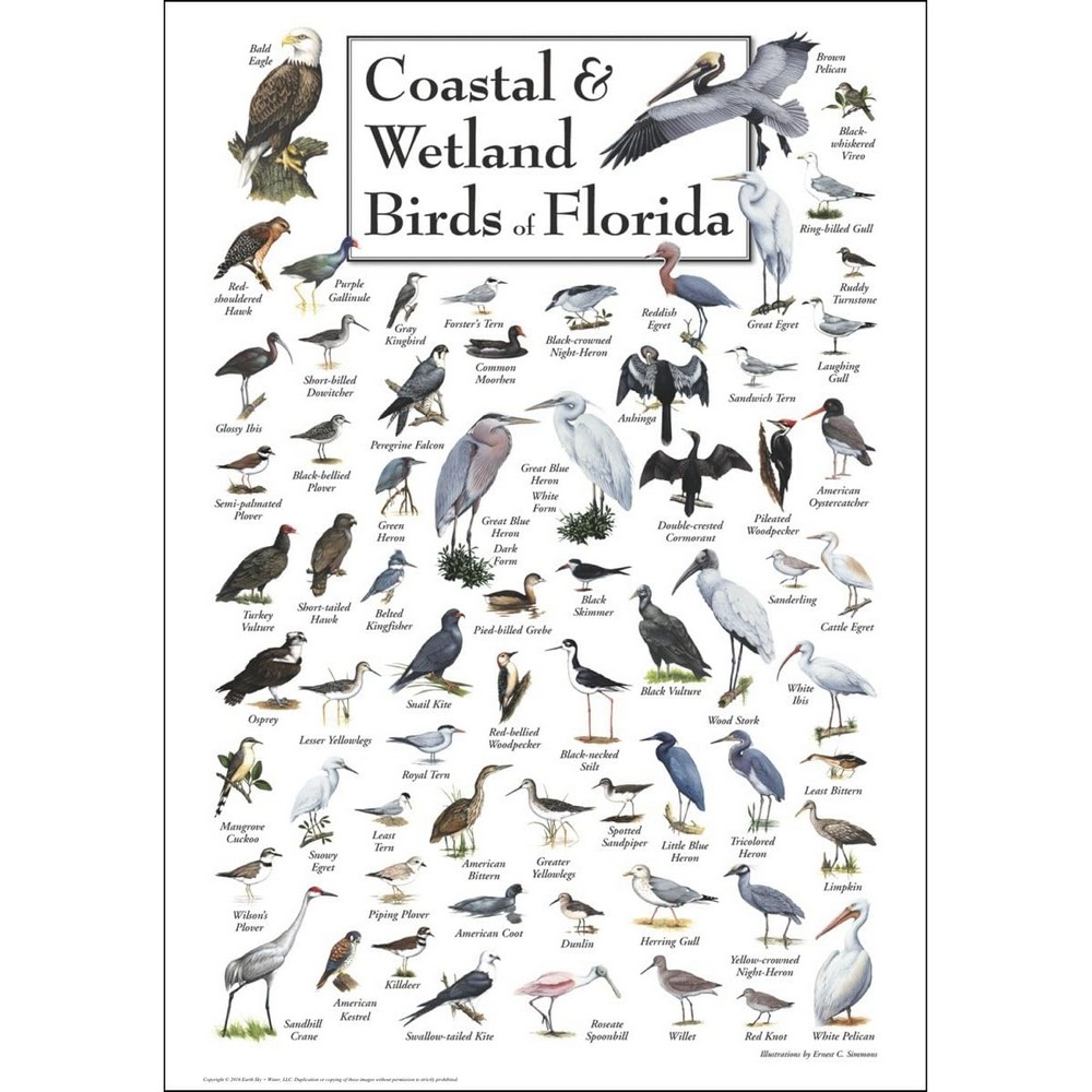 DescriptionReviews Description This stunning poster includes 68 bird species, both common and exotic, found throughout the coastal and wetland areas of Florida, including the Everglades Reviews Be the first to review this item There are no reviews yet Skip list Product tags Coastal 1276 Made in USA 5930