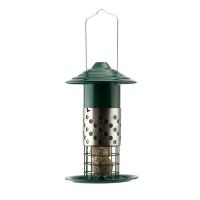 Feed your feathered friends year-round with the Combination Mealworm, Suet Balls & Peanut Feeder. A unique stainless steel sleeve slides up or down to give access the desired type of food. Slide sleeve down to feed mealworms, slide up to feed peanuts and suet balls. Offering different seed mixes attracts the widest variety wide variety of birds, including Cardinals, Nuthatches, Chickadees, Finches and Woodpeckers. Roof slides up to fill with food, constructed of powder coated steel for durability.