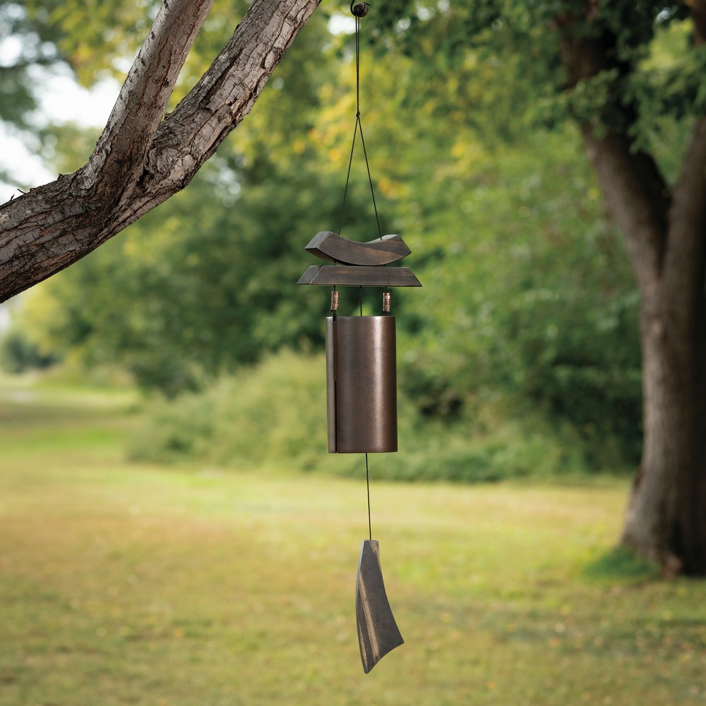 In Sanskrit, Dharma can mean many things including truth and protection. Buddhists study Dharma in order to achieve inner peace and happiness. For centuries, tuned bells have been suspended in homes and temples in the East to ward off evil and attract good luck and prosperity. Woodstock Dharma Bells are inspired by these ancient bells that work in harmony with the wind.