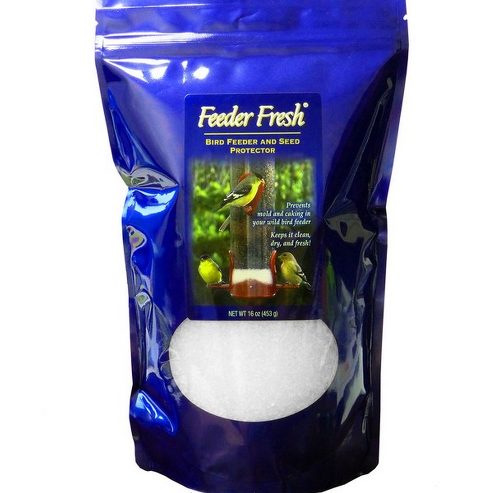 Clean and safe feeders. Easy for your customers. Healthy for the birds. Toxic mold in the feeder can be harmful to birds and people. Avoid it with Feeder Fresh. Re-closeable cobalt blue bag. 77% larger than the regular bottle and costs 20% less per ounce. Safe for wild birds! Feeder Fresh is made from sand, just very absorbent. The composition of Feeder Fresh is non-toxic, and contains essential elements naturally consumed by wild birds. Some of the most toxic compounds on earth are created by molds, and can cause harmful effects to birds and humans. Now there's a healthy solution stop mold from the start by using Feeder Fresh.