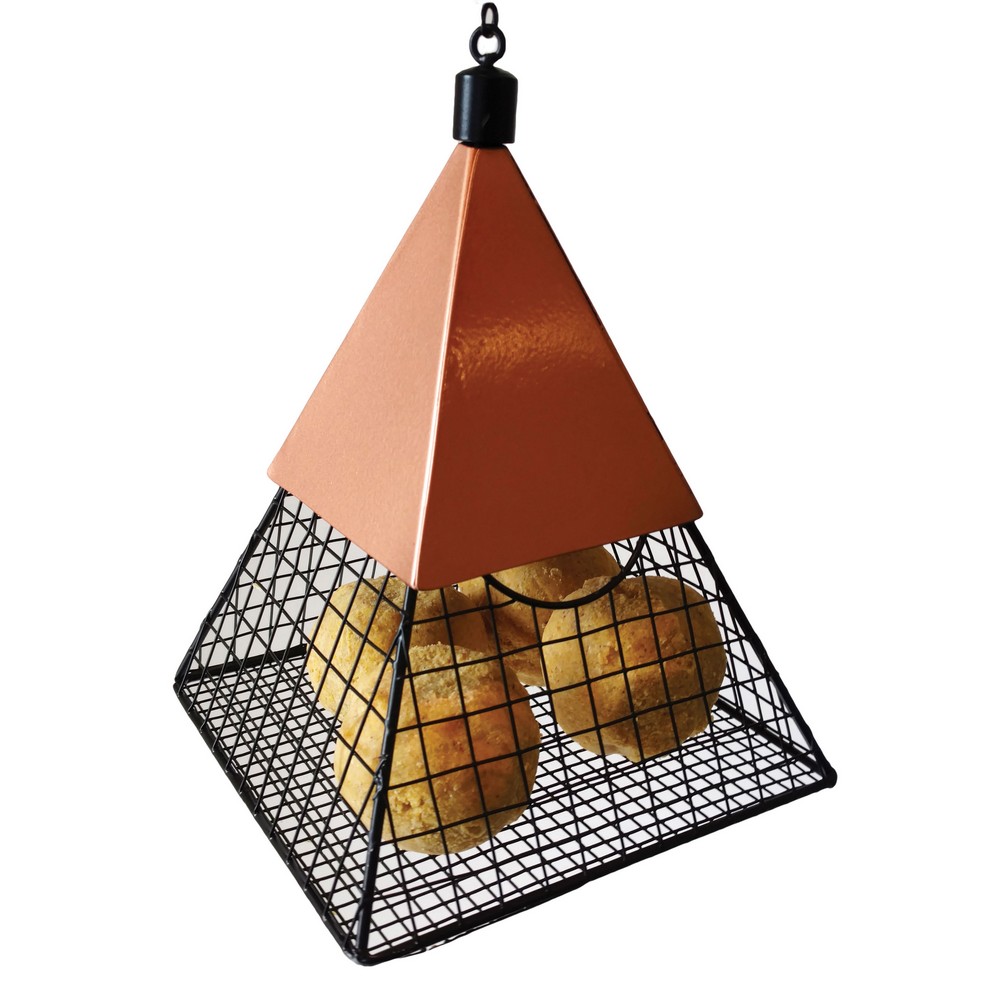 DescriptionReviews Description Holds 5 Suet Balls. Made with powder coated metal for durability. Bronze lid locks into place. Built-in chain and hook hanger for easy feeding. Mesh bottom for drainage. Reviews Be the first to review this item There are no reviews yet Product tags Clingers 322