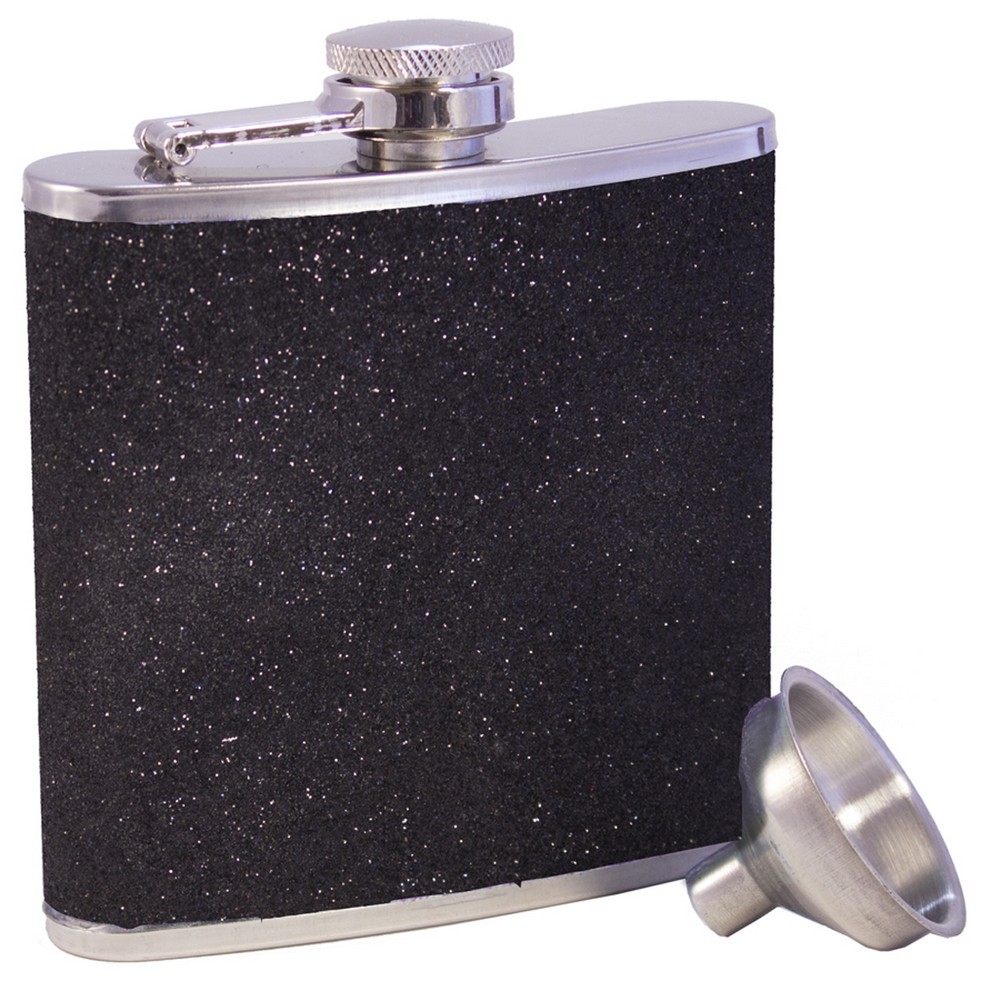 This flask is a show-stopper! Made of rust-resistant stainless steel, and featuring a Black glitter finish, it is an indispensable drinking accessory for making a statement. It's made to hold up to 6 oz. of the drink of your choice, and includes a funnel for easy filling. Drink in style!
