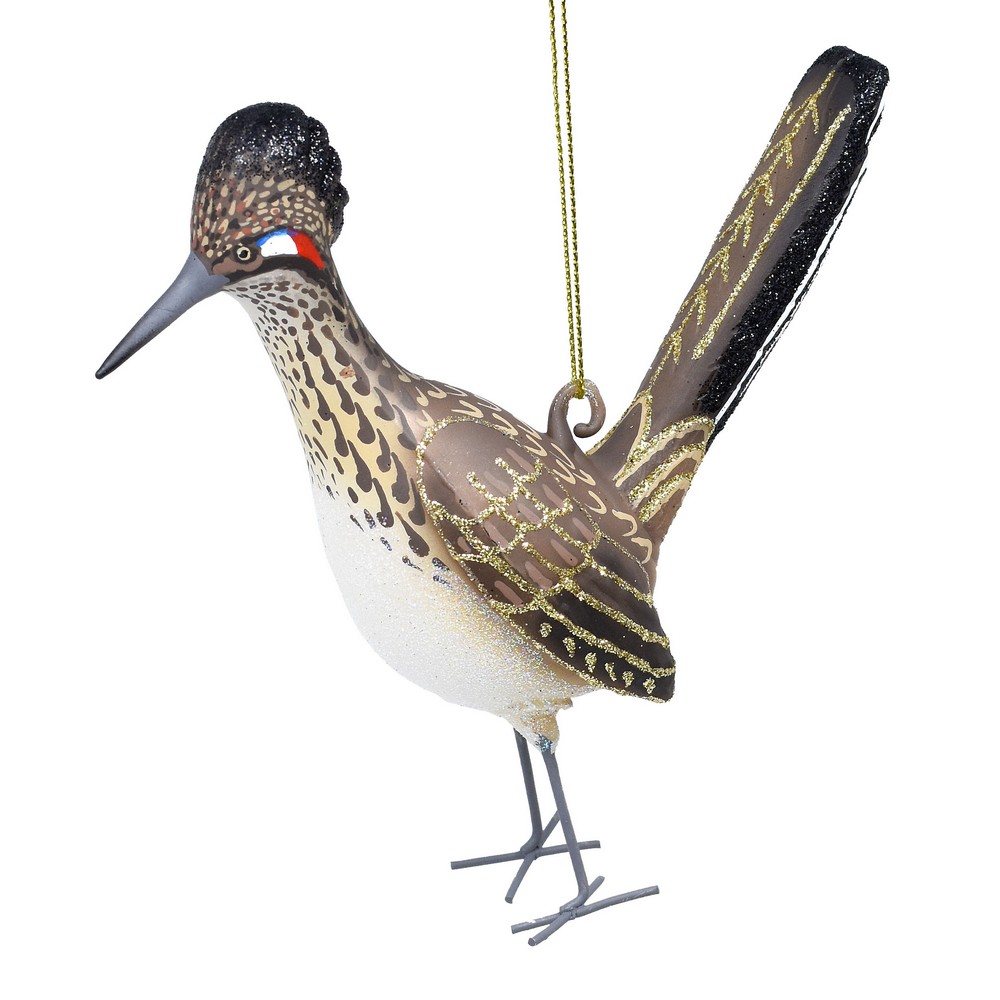 Give this bird a place to perch on your tree. Ornaments are handblown in glass, hand painted and dusted with glitter. Designed by Margaret Cobane