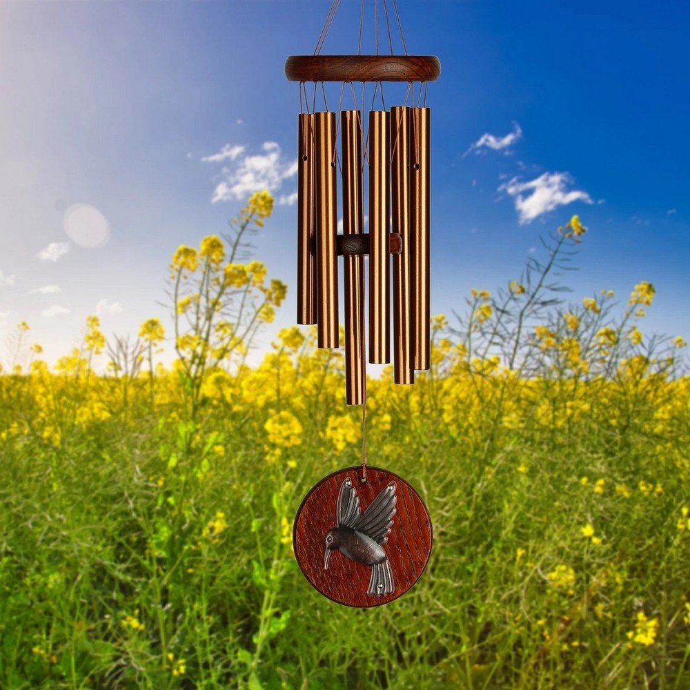 DescriptionReviews Description Teak finish ash wood with 6 bronze aluminum tubes and antiqued copper-plated steel hummingbird. Removable windcatcher for easy customization. 17 inch length. Reviews Be the first to review this item There are no reviews yet Product tags Hummingbird 1214