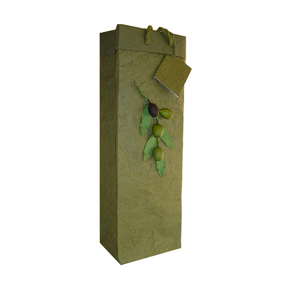 Extend the Olive Branch in our green wine bottle bag! This peace offering is of wine, and that always makes for happy resolve. Bella Vitas ecofriendly, handmade paper wine carrier is both reusable and sustainable and features a matching tag to add personalization. Make peace, drink wine!