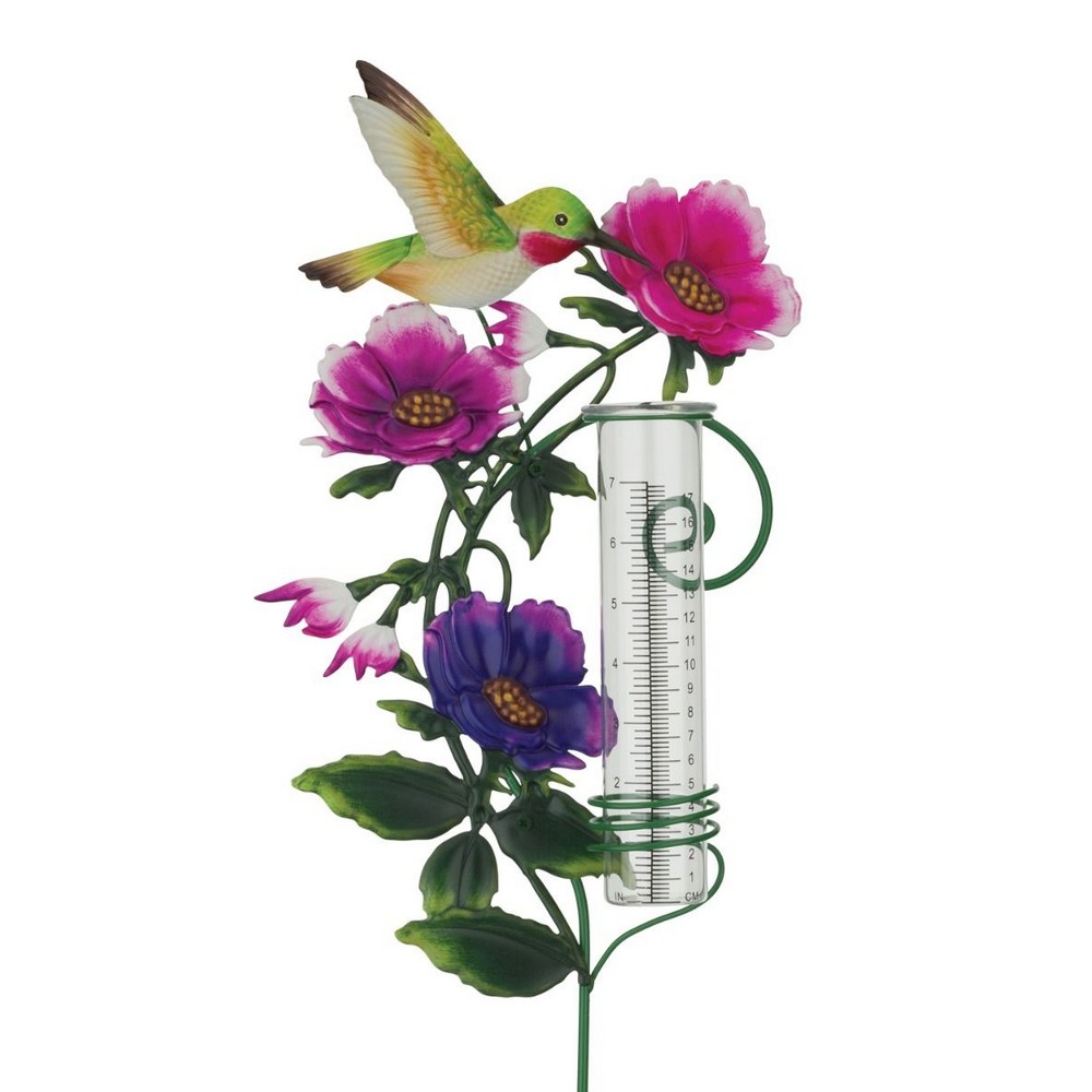 DescriptionReviews Description A delightfully painted hummingbird and flowers help you measure the rainfall in their large glass rain gauges, marked clearly with both inches and centimeters. You'll look forward to rainy days just to visit them. Reviews Be the first to review this item There are no reviews yet Product tags Hummingbird 1214
