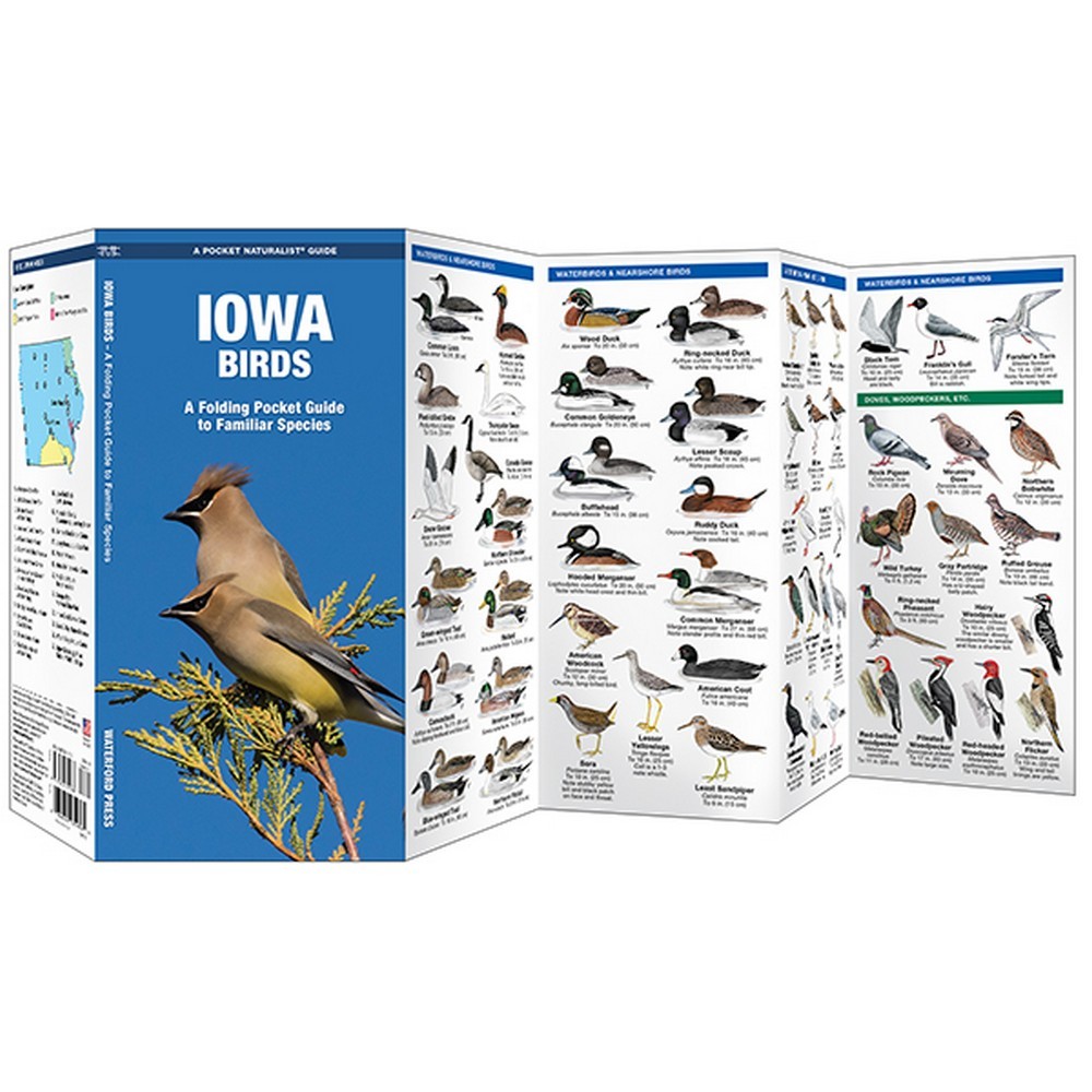 DescriptionReviews Description Iowa Birds is a pocket-sized, folding nature guide highlighting the most commonly seen birds in Iowa. Laminated for durability, these colorful illustrated guides are a great source of portable information. A map of popular birding spots in Iowa. Reviews Be the first to review this item There are no reviews yet