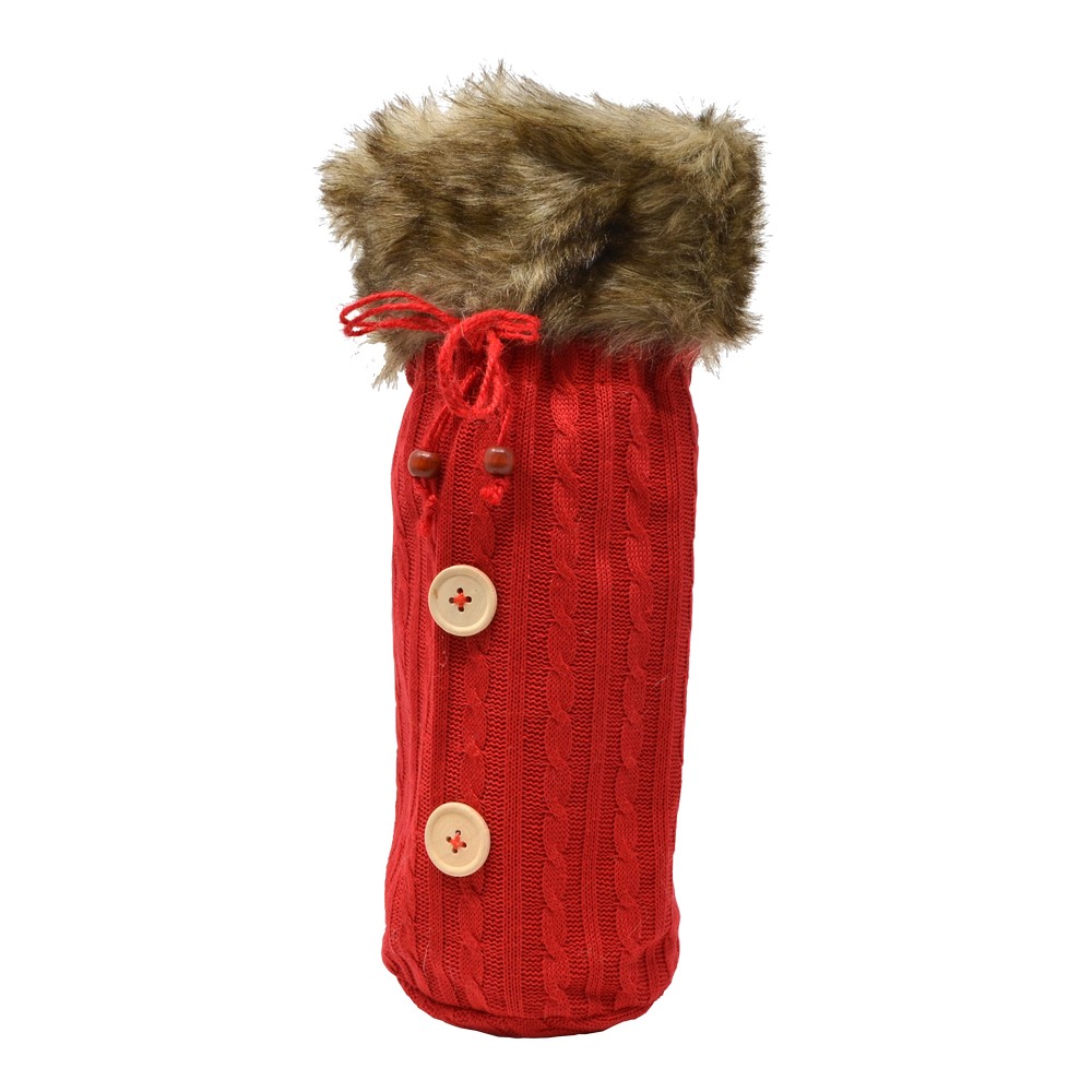DescriptionReviews Description Cozy bottle bag features a cable knit pattern, with faux fur collar, buttons and drawstring. Reviews Be the first to review this item There are no reviews yet Skip list Product tags Beer 445 Red 705