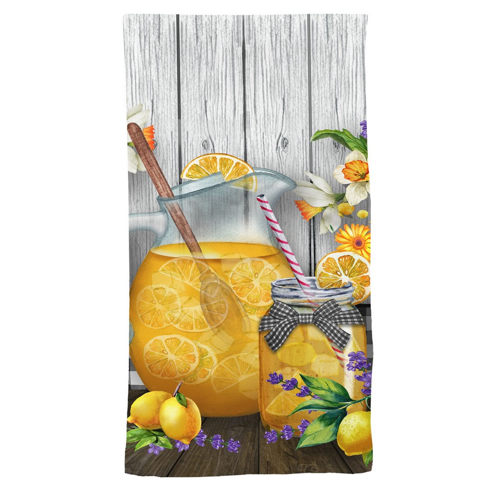 DescriptionReviews Description With its dimensions of 26" x 18" the Lemonade Hand Towel provides a generously sized area for drying tasks and as a decorative accent. This tea towel has a beautifully printed front with a practical and absorbent terry cloth back. 100% Cotton. Reviews Be the first to review this item There are no reviews yet Product tags Summer 366