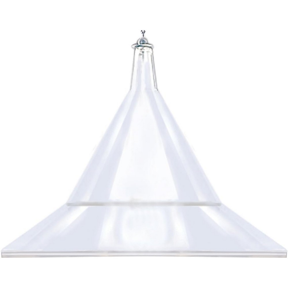 Mandarin Hanging Baffle. The best baffle made! Stops squirrels, increases bird activity. Easy to hang, hardware included. Keeps pigeons from roosting. Protects hanging feeders and houses. 17 in clear dome never blocks view. Shelters feeder from rain and snow. 100% recycled Plexiglas construction.