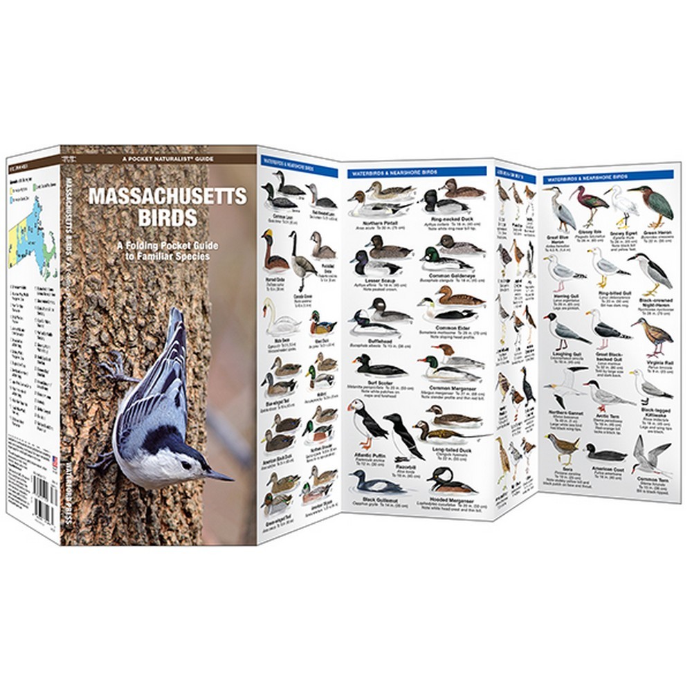 Massachusetts Birds is the perfect pocket-sized, folding guide for the bird lover and nature enthusiast. Rich illustrations highlight the most commonly found birds in Massachusetts. Laminated for durability, these handy guides are a great resource of portable knowledge.