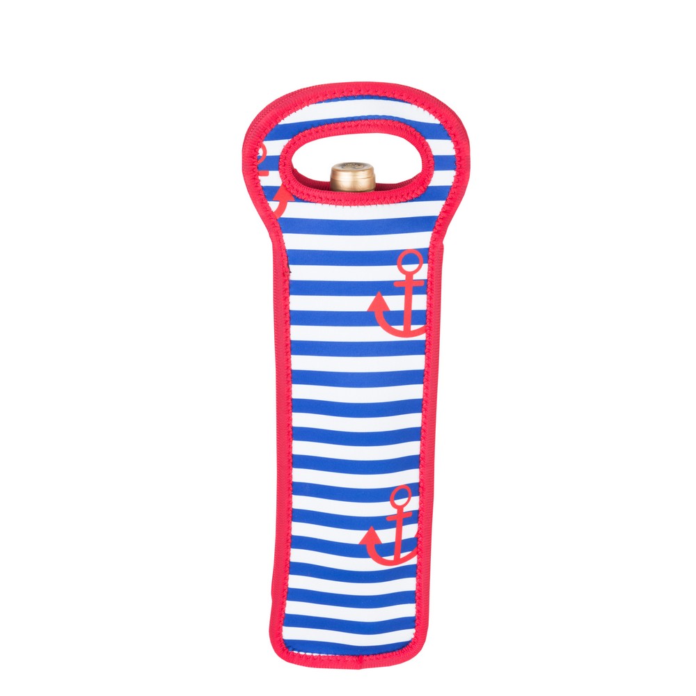 These neoprene wine totes are a great way to bring your favorite bottle of wine wherever you're going. Neoprene is basically the same material they use in wetsuits and maintain your food's or drinks' temperature whether it's hot or cold. It's also great for keeping moisture out. So we figured, why not make our wine carriers out of neoprene? These have snaps to keep your tote closed and are machine washable.