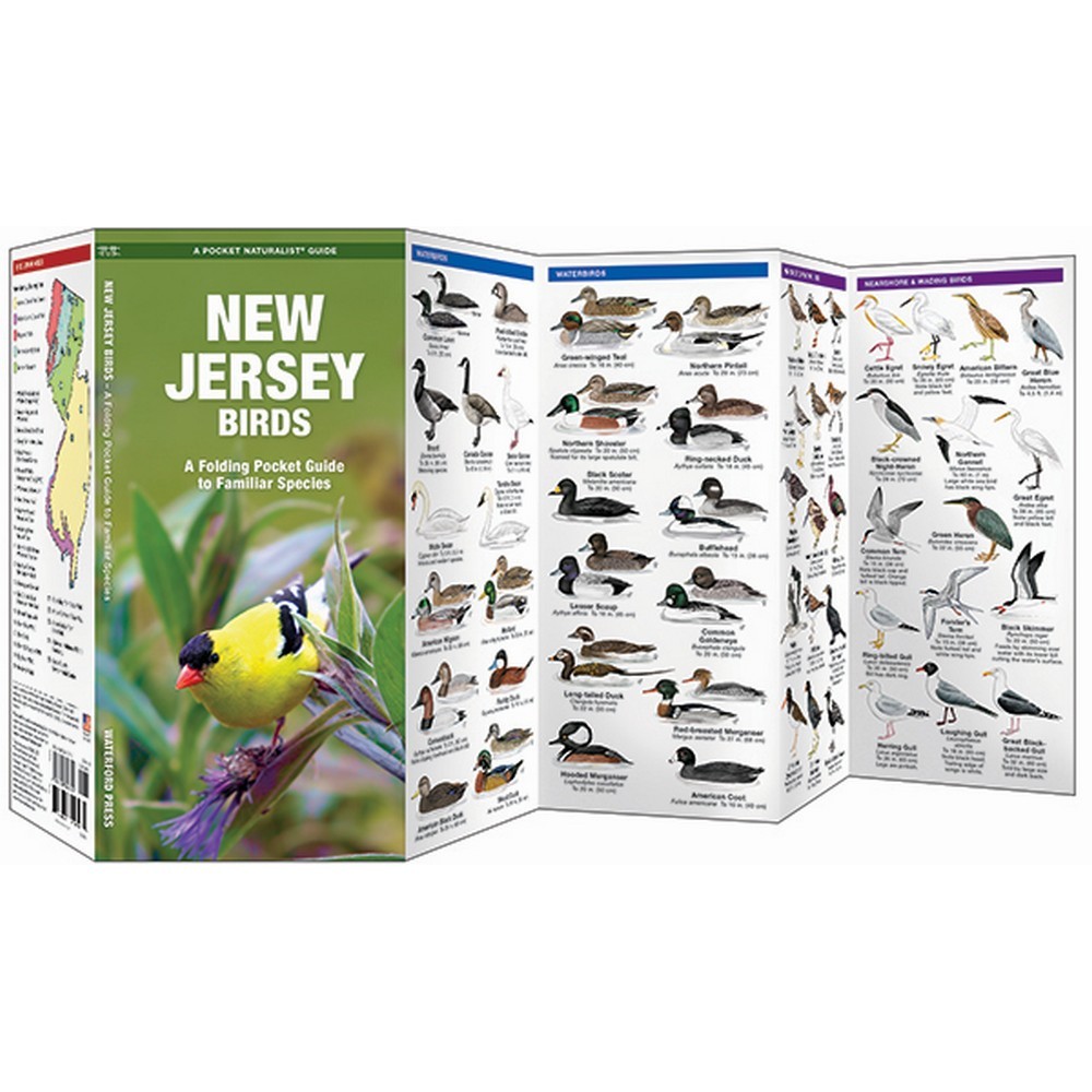 DescriptionReviews Description New Jersey Birds is a pocket-sized, folding Pocket Naturalist guide highlighting the most commonly seen birds in New Jersey. Laminated for durability, these handy guides are a great source of portable information in the backyard or out in nature. Reviews Be the first to review this item There are no reviews yet