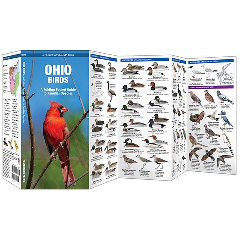 This pocket-sized, folding Pocket Naturalist guide highlights the most commonly seen birds in Ohio. Ohio Birds is laminated for durability and folds for portability. Richly detailed illustrations and a map of popular bird sanctuaries located in Ohio.