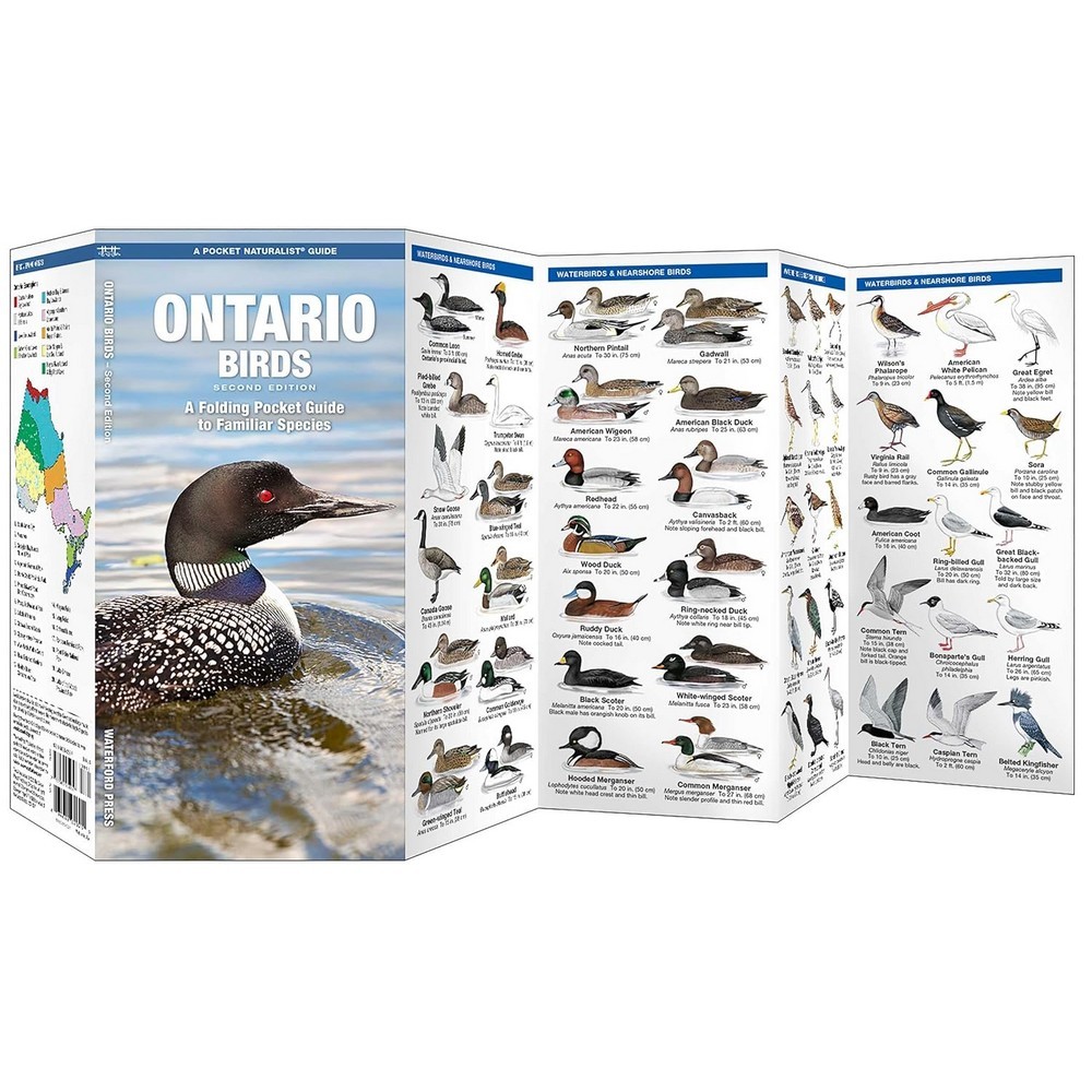 Ontario Birds is a pocket-sized, folding guide highlighting the most commonly seen birds in this Canadian province. Laminated for durability, these handy guides are a great source of portable information for the backyard birdwatcher or the avian enthusiast.