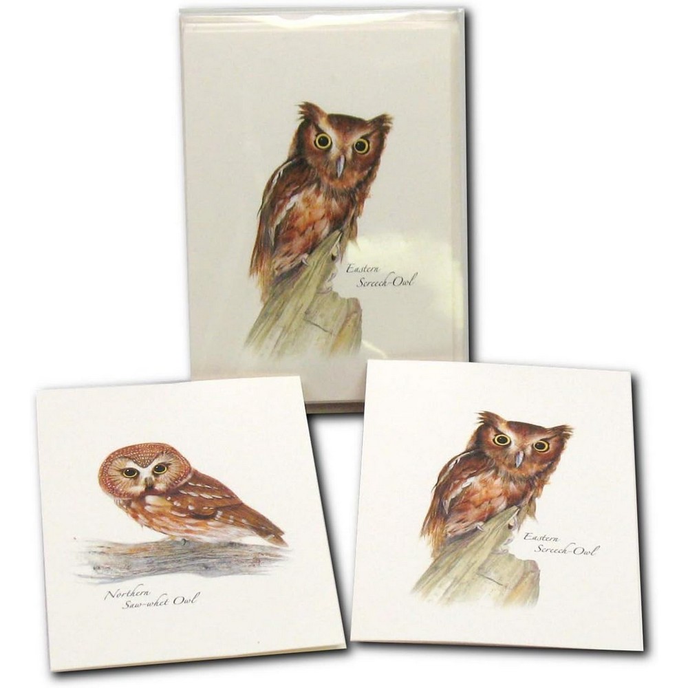 DescriptionReviews Description This beautiful Assortment includes 8- 3.5 X 5 inch notecards with detailed color illustrations, 4 each of two different styles, each blank inside, printed on quality recycled paper, plus envelopes, all packaged in a mylar gift box. Reviews Be the first to review this item There are no reviews yet Skip list Product tags Made in USA 5930 Owl 440