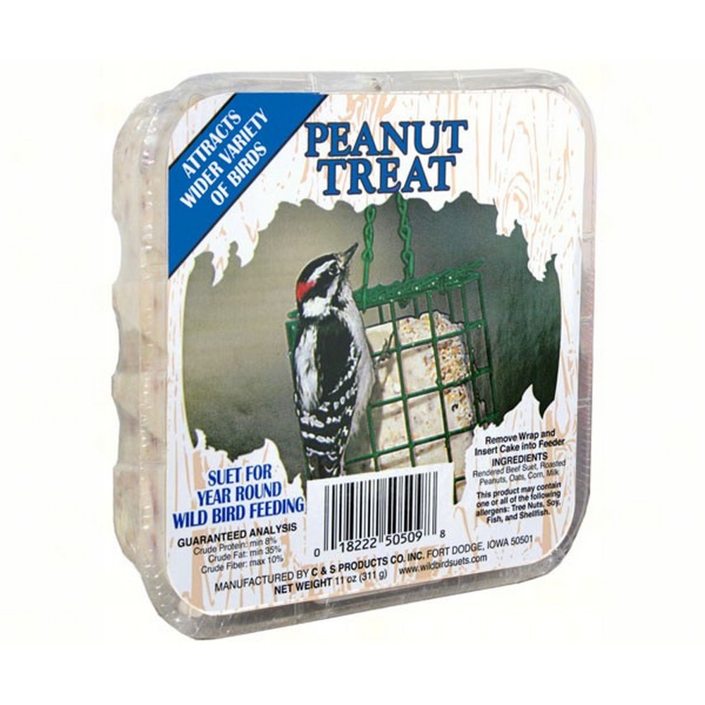 Peanut Treat is loaded with roasted peanuts, corn, oats and beef suet that attracts a wider variety of birds for your year round wild bird feeding. Ingredients: Rendered Beef Suet, Roasted Peanuts, Corn, Oats, and Milk. Additional freight applies when shipped.