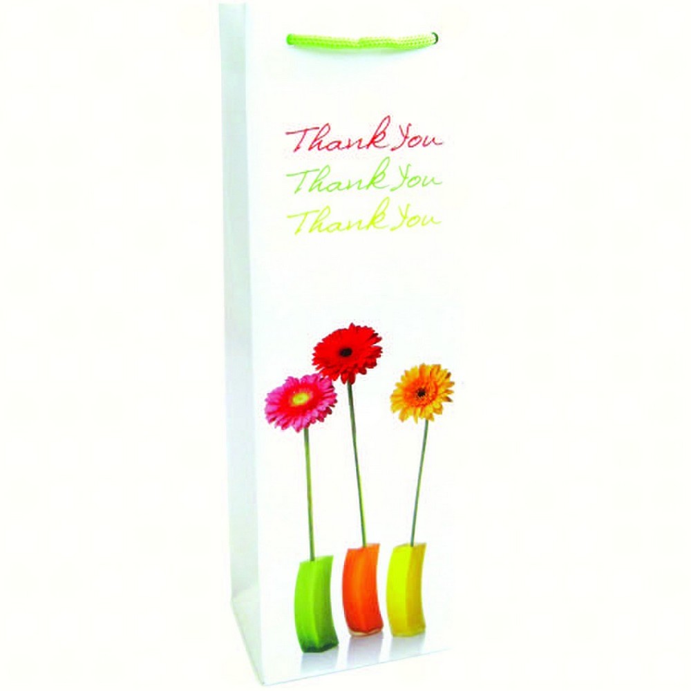 Saying thank you indicates good manners, saying thank you with a bottle of wine indicates great taste! Bella Vita has made saying thank you easy and tasty with our flowers wine bag. Printed on superior weight glossy paper, this single bottle wine bag also comes with a matching gift card for personalization. Your mother would be so proud!