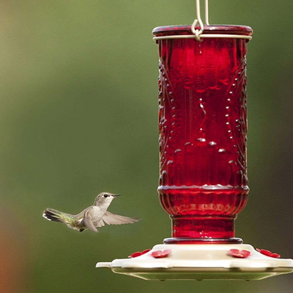 DescriptionReviews Description Red Vintage Hummingbird Feeder. 20 oz capacity wild bird feeder. Wide mouth bottle sits flat for easy fill. Disassembles for easy cleaning. Bring more birds and more joy to your yard. Reviews Be the first to review this item There are no reviews yet Skip list Product tags Hummingbird 1214 Red 705