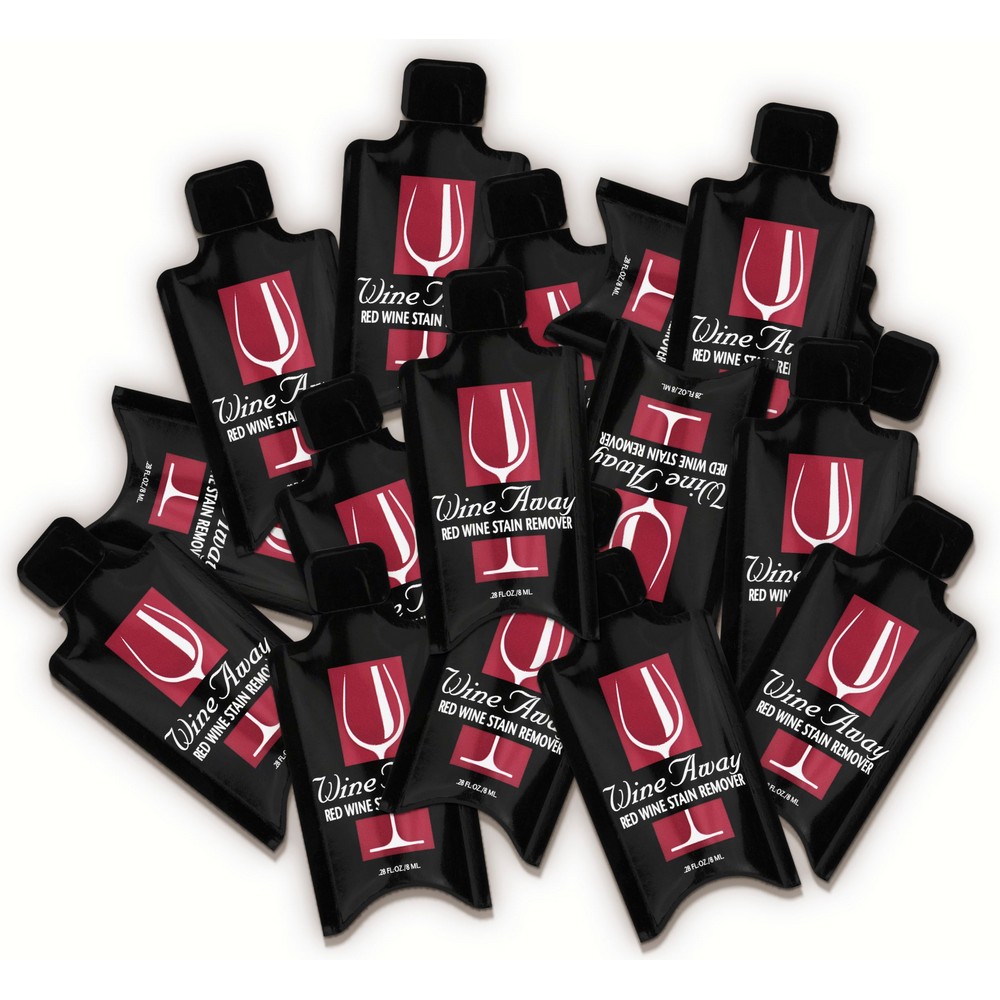 DescriptionReviews Description Red Wine Stain Remover Trial Pouch .28 ounce bottle. Use and toss OR give away! The trial-size Wine Away packet is a one-time-use packet. Just tear, squeeze, and tossStash the packet in your shaving kit, briefcase or car glove box Individual pouch Reviews Be the first to review this item There are no reviews yet Skip list Product tags Made in USA 5930 Wine 3591