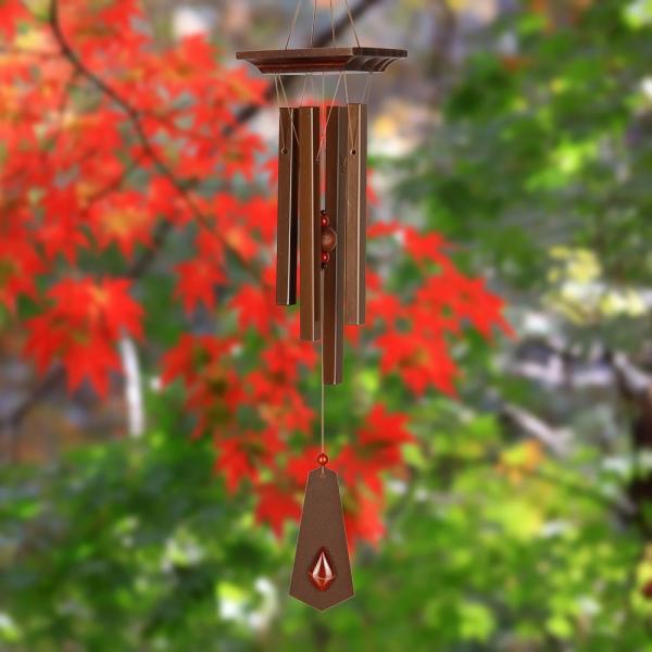 DescriptionReviews Description Teak finish pine wood with 4 square bronze aluminum tubes and faux amber accents. Rust powder-coated windcatcher. 22 inch length. Reviews Be the first to review this item There are no reviews yet