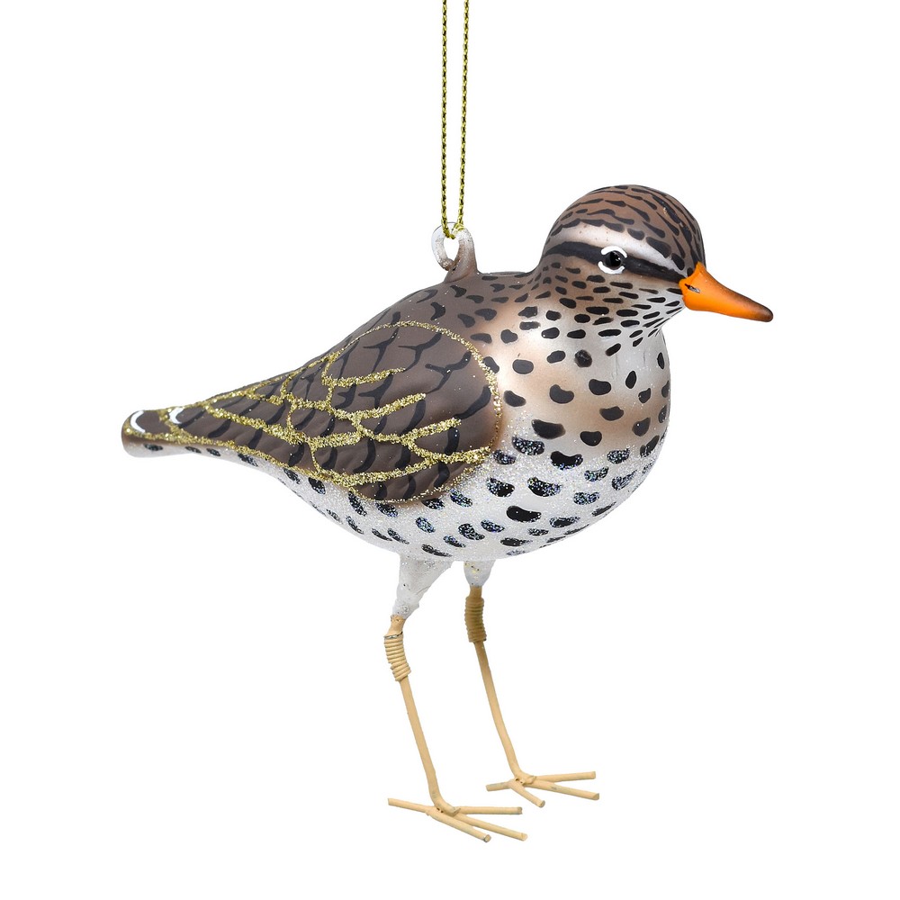Give this bird a place to perch on your tree. Ornaments are handblown in glass, hand painted and dusted with glitter. Designed by Margaret Cobane