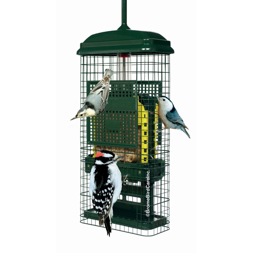 A truly innovative squirrel-proof suet bird feeder. No more greasy fingers with Mess-free Suet Loading. Two Suet cakes allow a number of Woodpeckers, Nuthatches, Titmice and Chickadees to feed at the same time. And no Suet goes wasted: two Crumb Ports will catch the Suet that birds drop. This Suet feeder is weight-adjustable so that you can control which size birds will feed there. Comes with Lifetime Care.