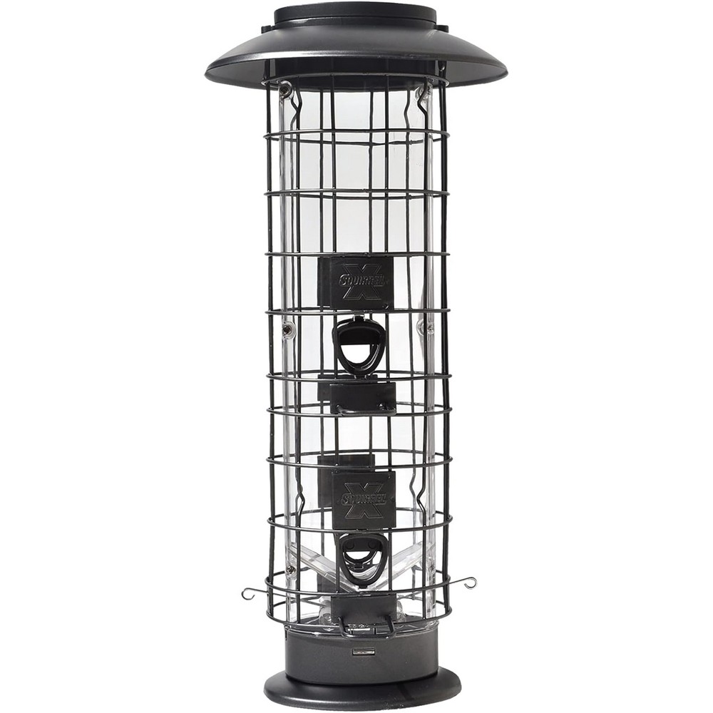 Part of our SureFill No Spill family- an innovative way to make bird feeding easy! Squirrel's weight pulls down the cage to close all feeding ports. 1.5 pound capacity. Patented 1 touch opening lid simplifies the task of filling feeders, 4 feeding ports with large rounded perches to attract more birds. Gunmetal finish.