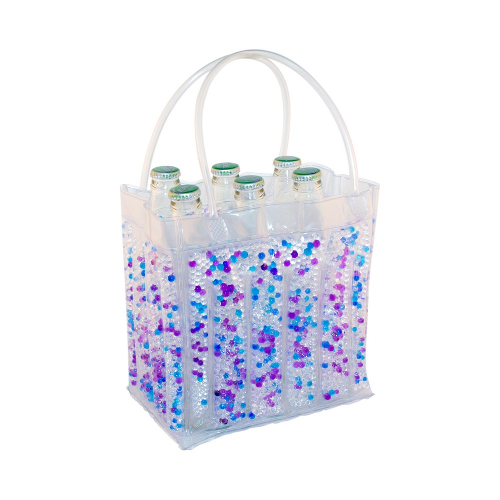 Freezable six pack tote. All Cool Sacks utilize re-freezable liquids on 2 or more sides. Simply place in freezer until frozen - then place a bottle of wine in a sack or wrap and in approximately 10 minutes, it's chilled. Also great for keeping wine chilled on the go to a party or in the backyard or wine tasting grounds. THIS ITEM CAN NOT SELL IN CALIFORNIA