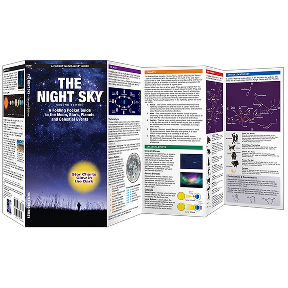 This simplified guide to the night sky introduces the reader to the solar system, our moon, planets, visible with the naked eye, meteor showers and eclipses, and features seasonal GLOW-IN-THE-DARK charts to the stars and constellations! Simply shine a flashlight on the charts to illuminate them and then use your fingers to walk between major star groups. Laminated for durability, this indispensable pocket reference is ideal for astronomers of all ages. Made in the USA.