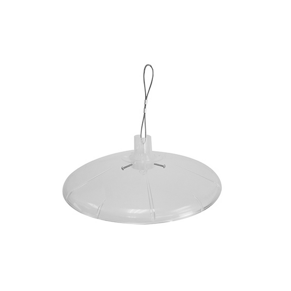 The Universal Squirrel Baffle works with both hanging and pole mounted feeders. Made with durable polycarbonate plastic, it stays clear, is durable and weather resistant. Use with all hanging feeders, fits poles 1.5 to 1.25 inched. Keep squirrels out, saves on food costs and provides hours of enjoyment bird watching.