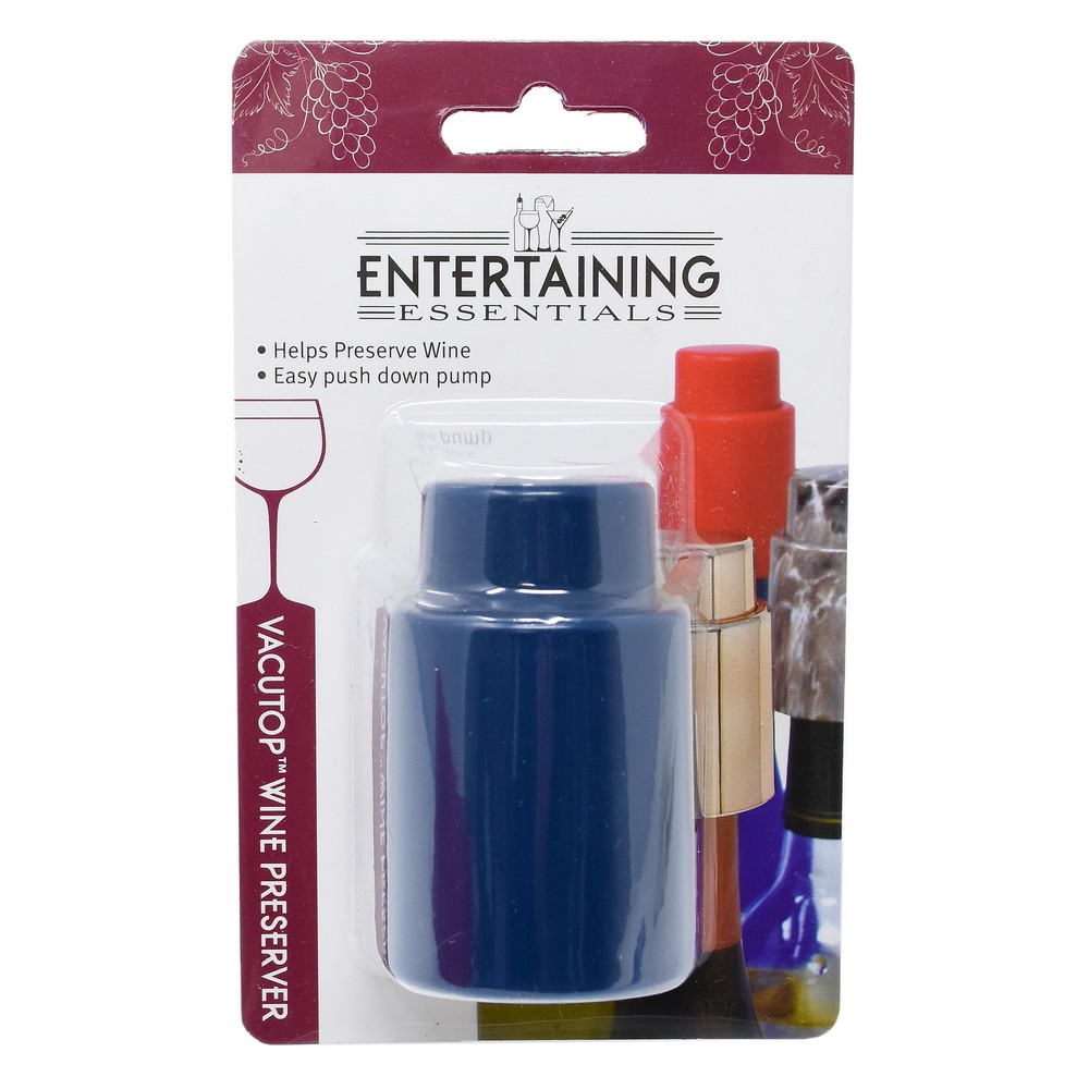 DescriptionReviews Description Vacuum Wine Stopper Assortment includes 1 each of 4 Primary Colors. Peggable Clamshell Packaging. Vacuum seal winePush top4 primary colors red, navy, yellow, black4 piece assorted coloros Hanging blister carded Reviews Be the first to review this item There are no reviews yet Product tags Wine 3591