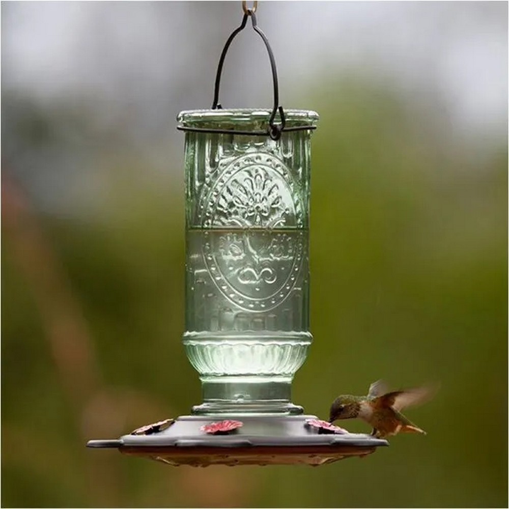 DescriptionReviews Description Large capacity beautiful Vintage bottle with pewter metal accents. Stands flat on counter for easy filling. 5 highly durable metal perches and beautiful red flowers are integrated into the basin. Holds 20 oz of nectar. Reviews Be the first to review this item There are no reviews yet Skip list Product tags Green 567 Hummingbird 1214