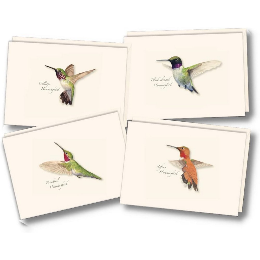 DescriptionReviews Description This beautiful Assortment includes 8- 3.5 X 5 inch notecards with detailed color illustrations, 2 each of 4 different styles, each blank inside, printed on quality recycled paper, plus envelopes, all packaged in a mylar gift box. Reviews Be the first to review this item There are no reviews yet Skip list Product tags Hummingbird 1214 Made in USA 5930