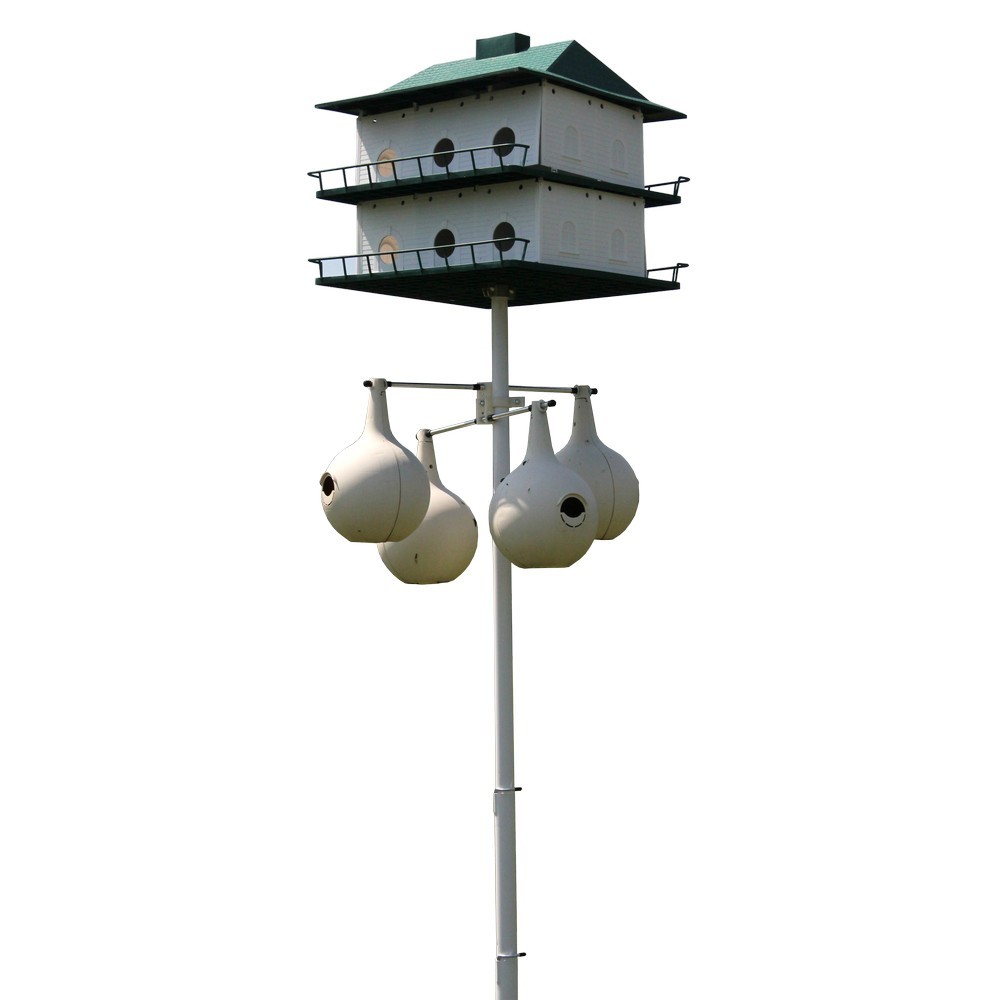 Made specifically for Purple Martin houses and gourds, the MP-19P is a telescoping, white powder-coated pole with a total height of 15 ft. It’s designed to easily assemble with four sections and keylocks for added stability. You can raise and lower your house and gourds for cleaning and maintenance. Ground sleeve, hardware, gourd adapter kit and instructions are included. For maximum stability we recommend you plant the pole deep in the ground or concrete. When installed properly, this can hold heavy houses.