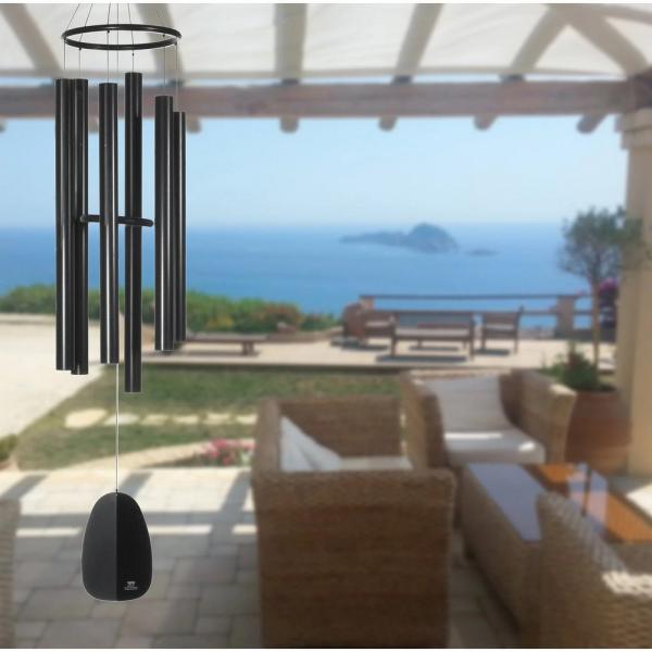 Tuned to an ancient Asian scale, this super-resonant Woodstock Windsinger Chimes of Apollo are named for the Greek god of prophesy, music and healing. Woodstock's Windsinger chimes have a distinctively compelling design. With a special suspension devised for maximum duration of its deep sounds, the six thick-walled Black matte aluminum tubes produce enchanting harmonies. This large chime is the second from the largest of our Windsinger Collection, all of which share the same evocative scale in different octaves. Boxed for gift-giving.