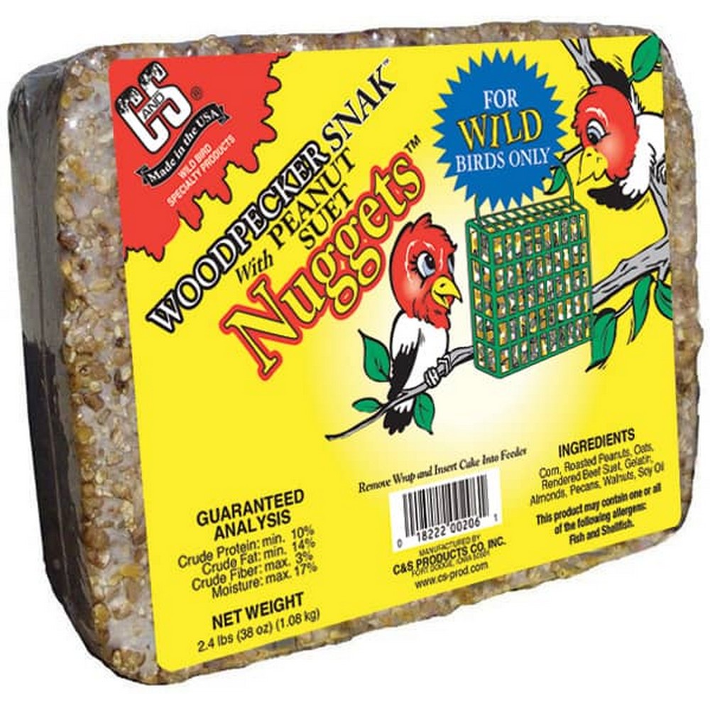 DescriptionReviews Description Corn, Roasted Peanuts, Oats, Rendered Beef Suet, Gelatin, Almonds, Brazil Nuts, Cashews, Pecans, Walnuts, Raisins, Milk, Soy Oil. They attract the same wild birds as seed, and very easy to use. E-Z fill feeders make feeding a snap! Reviews Be the first to review this item There are no reviews yet Product tags Made in USA 5930