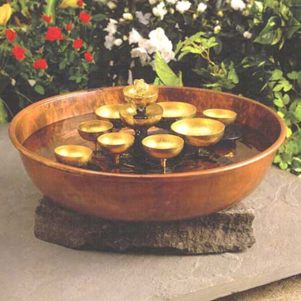This version of our popular Water Bell Fountain features a beautiful copper bowl with a flame finish. The swirling motion of floating bells provides this fountain's peaceful chiming sounds. Create an oasis in your garden the soothing murmur of the water combines with the gentle ringing of the bells to create a tranquil mood. Boxed for gift-giving.