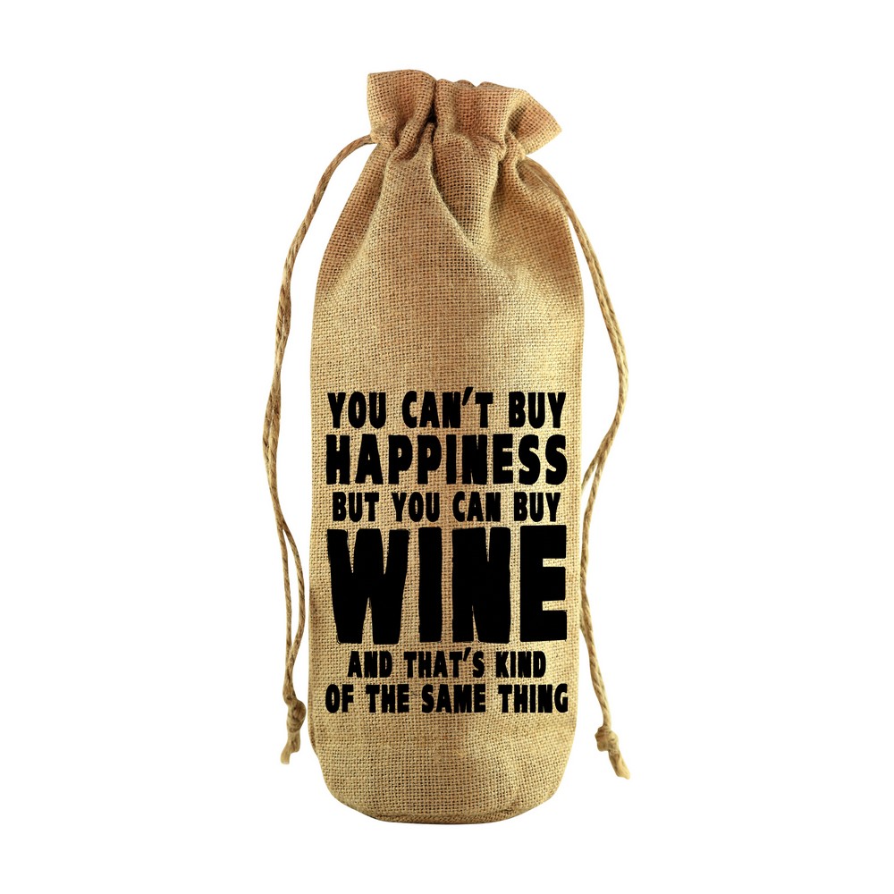 DescriptionReviews Description Jute Wine Sack You can't buy happiness but you can buy Wine and that's kind of the same thing Reviews Be the first to review this item There are no reviews yet Product tags Wine 3591